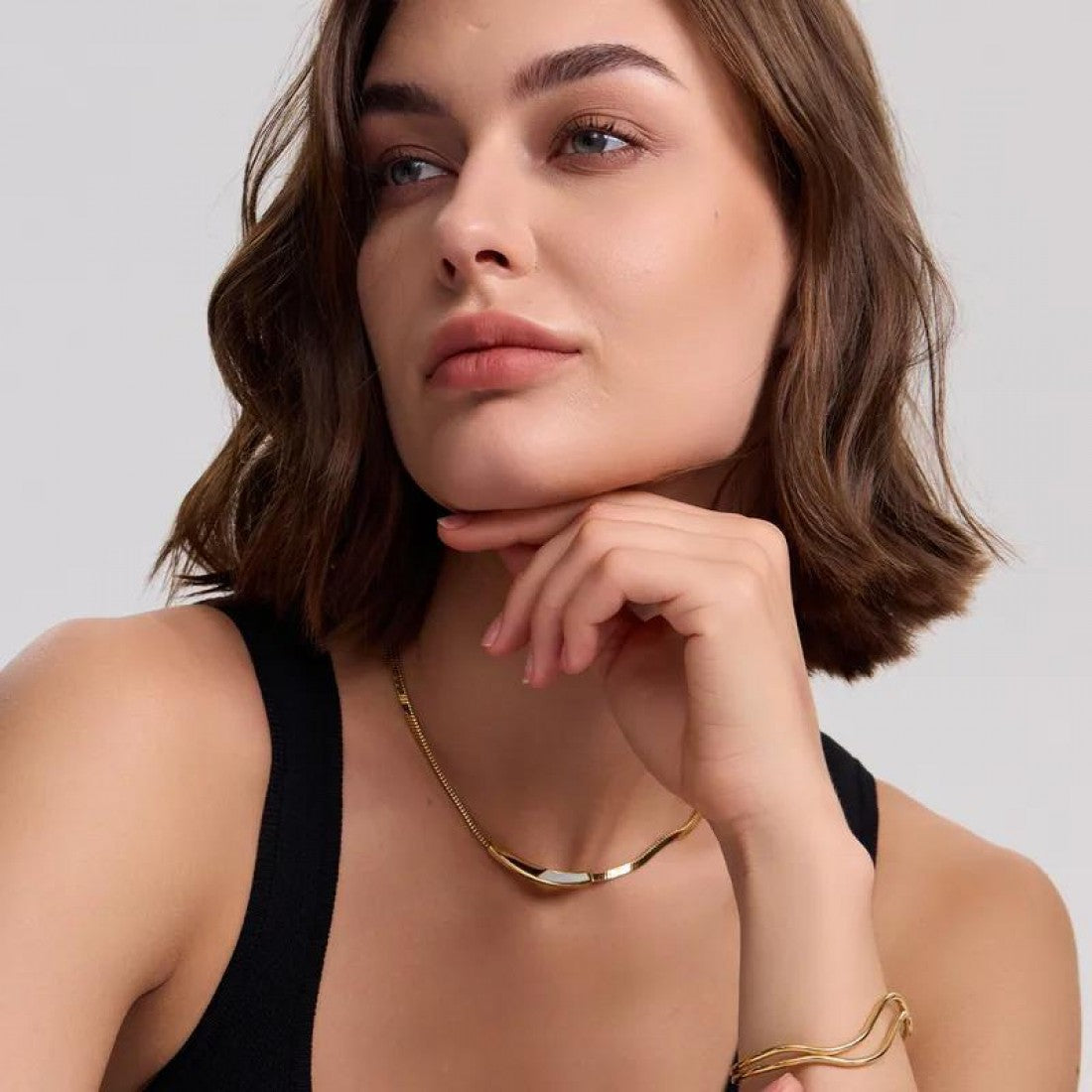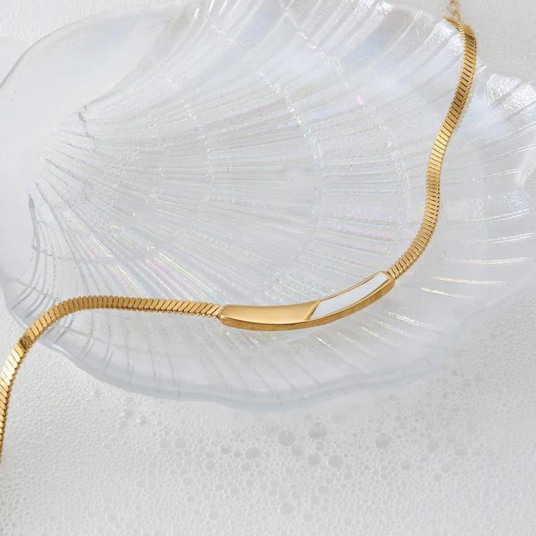 Crafted from premium 304 stainless steel and finished with a luminous mother-of-pearl inlay, this necklace offers both strength and elegance in one. Available in your choice of 18K gold, white gold, or classic gold plating, it’s designed to maintain its radiant colour and shine for years to come.